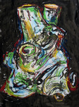 2018Geabstraheerd kleurrijke zwarte meneer in acryl verf geschilderd. Een echte Henk Snoek Snelle werk.