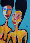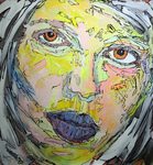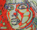 2014acrylverf en lijntechniek toegepast. De attente bezoeker ontdekt misschien een gelijkend portret met afwijkend kleurgebruik. Dat is juist. Heb het werk in een opwelling aangepast.