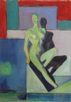 2001Schetsontwerp voor groter schilderij. Echter nooit tot het schilderij gekomen. Tevreden met dit resultaat ondanks onvolkomenheden mbt anatomische onvolkomenheden en maatvoeringen. Tevreden ook met gekozen kleurstellingen.