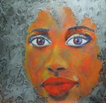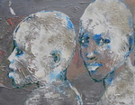 2013Experiment met zilverkleurige verf. De oplettende bezoeker zal opvallen dat er een gelijkend portret binnen de serie portretten aanwezig is met krulletjes. Het betreft hetzelfde werk echter met een nieuwe haardracht in zilver. Aan u ter beoordeling of het werk er op vooruit is gegaan?