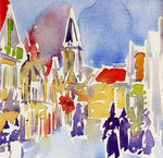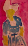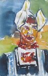1996Kleine aquarel waarin Oost Indische inkt is toegepast. Na het maken van de voorstelling in aquarel deze volledig met Oost Indische inkt bedekt en enige seconden laten drogen en vervolgens de inkt weer verwijderen door de aquarel onder de kraan te houden. Zeer tevreden over dit resultaat.