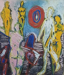2015Naar aanleiding van dit jaar 100 jaar droge voeten; watersnood 1916-2016 hebben wij als stichting Kunstkijken in Volendam de kunstenaars uitgedaagd een werk te maken gebaseerd op dit thema. Zelf heb ik uiteraard ook meegedaan en dit is het resultaat. Mijn inspiratie kwam na het zien van het werk van Michelangelo 'De schepping van Adam'. U weet wel waar de handen naar elkaar reiken en de vingers elkaar net niet raken. In mijn schilderij heb ik - hoe toepasselijk - in plaats van de handen de voeten gebruikt die naar elkaar reiken en verder treft u nog enkele subtiele verwijzingen naar de watersnood en hierna tot vandaag de dag