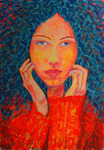 2010Uitgangspunt was een heel klein zwart wit fotootje gevonden van dit portret in oud fotoblad en uitgewerkt in kleur.